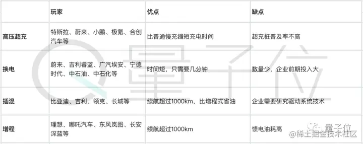 纯电派一般走高压超充或换电模式;混动派包括插电混动式,和增程式。