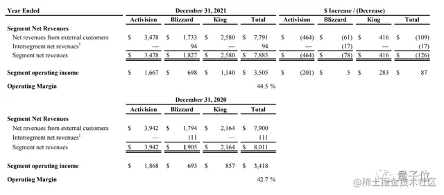 从财报数据看,暴雪2021全年收入18.27亿美元,比2020年下降4%,但经营利润却略高于2020年。