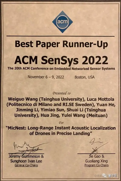 比如与清华团队联合开发了一项无人机声波定位技术,获得了去年ACM大会的Best Paper Runner-Up奖(最佳论文第二名)。