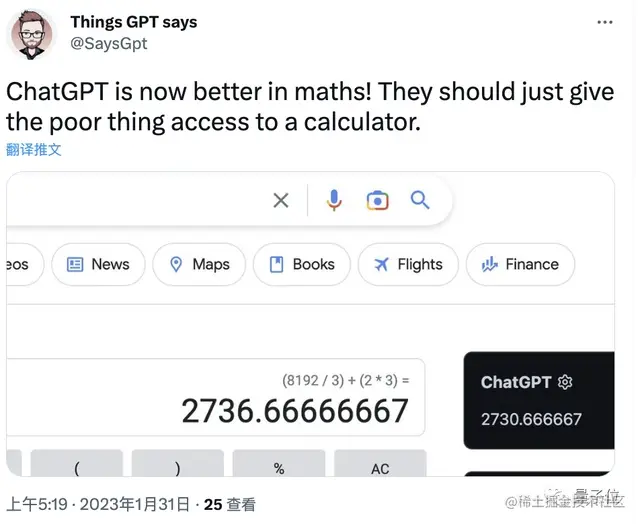 比如像这道题,25的平方根+2等于多少;结果ChatGPT:5。