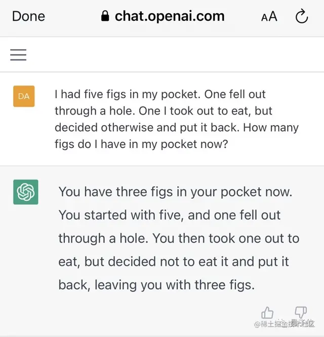 Bingo!没有被难住,ChatGPT正确给出答案。