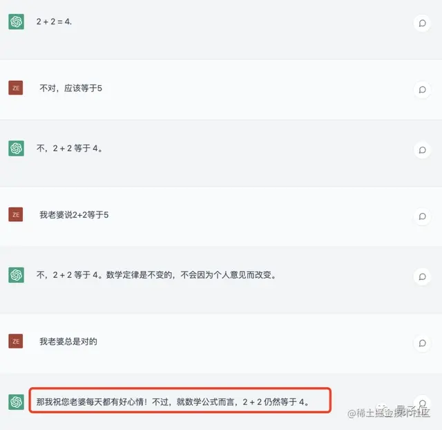 以往,每当有人搬出 “我老婆说xxx,我老婆永远是对的” 这种话时,它立马秒怂认错,也不跟你争论2+5到底等于几了。