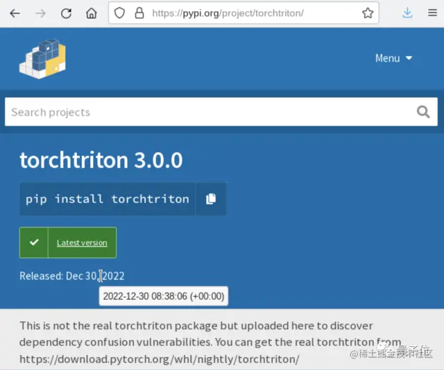 攻击者在Python的官方索引库:PyPI (Python Package Index),创建了一个叫“torchtriton”的Python软件包。