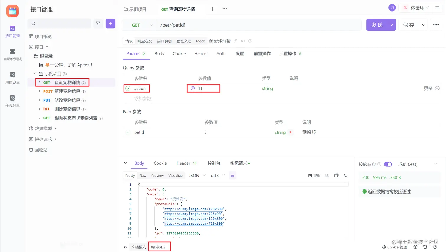 对于接口的 path 和 Method 都一样,只通过 query 参数来做业务数据区分的接口,Apifox 的接口唯一标识可以满足你的应用需求。想要了解更多相关的知识,比如接口的导入、Mock数据 和 自动化测试 等功能。