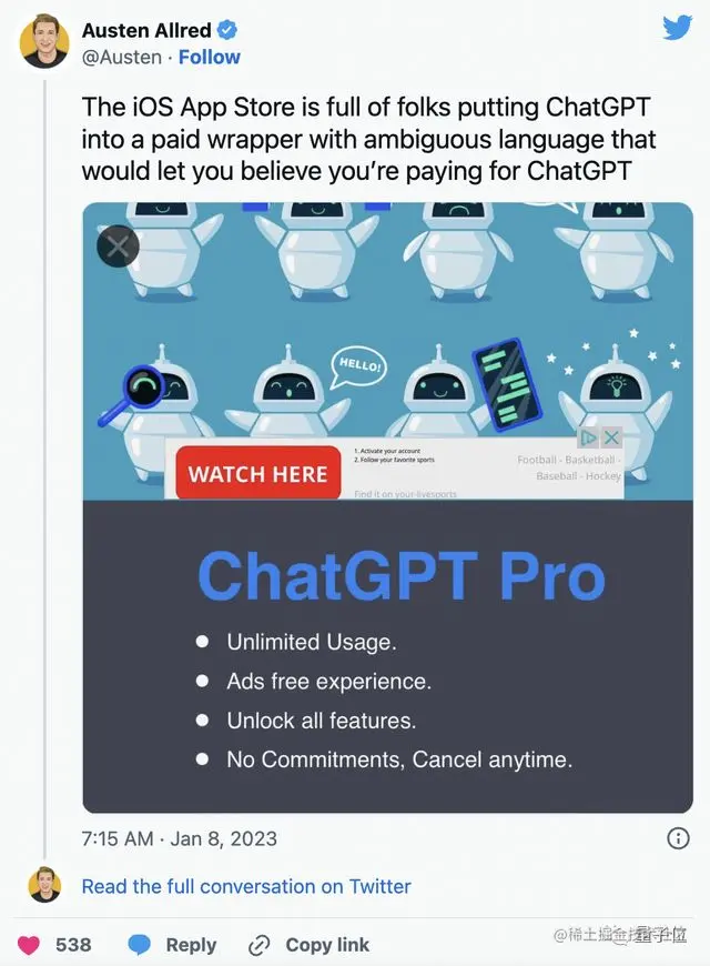数以万计的用户下载后,发现这些聊天GPT粗制滥造,没有提供任何有用的功能。