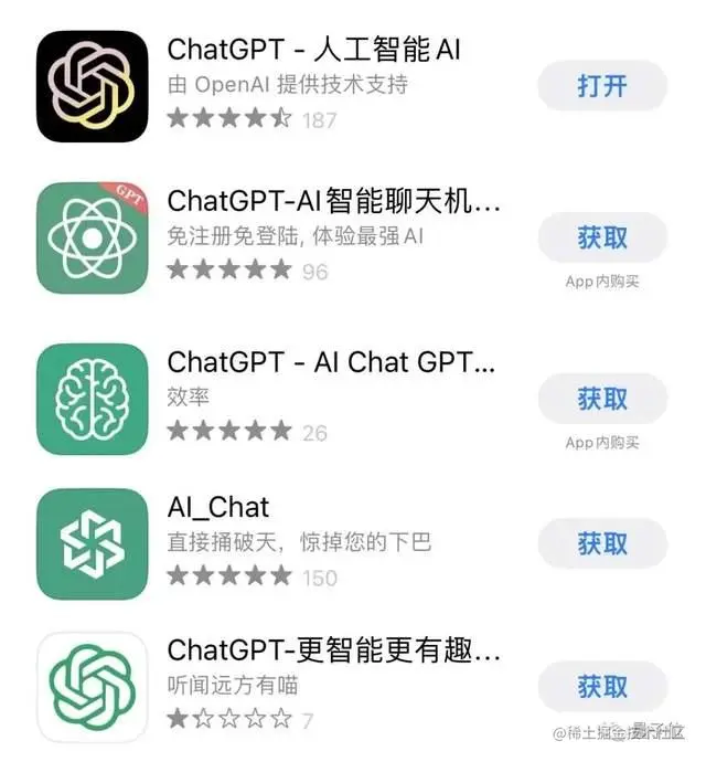 它们的策略是将ChatGPT包含在App名称中,并通过提高App评级增加曝光率。