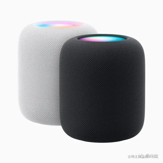 外观上,新一代HomePod仍采用无缝透声织网设计,有黑白两色可选,配有“颜色匹配”的电源线,背光触控板上仅有音量调节的两个按键。