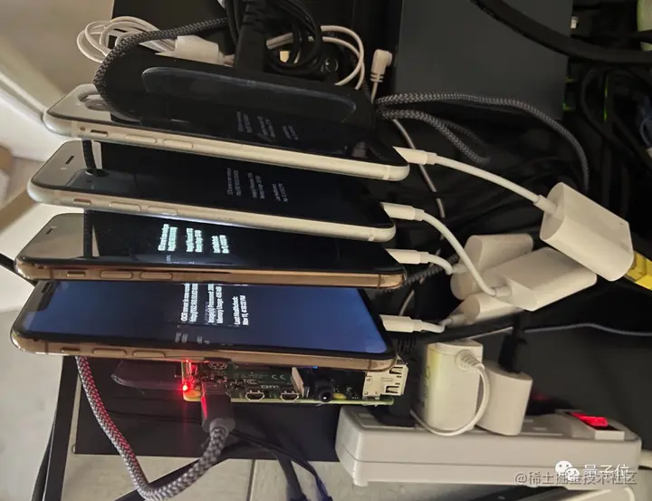 虽然说OCR应用服务器的速度很快,但也禁不住这样薅,于是iOS OCR服务升级了(多加几台手机),于是最终的装置就变开头图中的那样了。