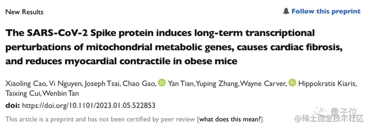 和冠状病毒刺突蛋白 (S蛋白)有关,它会对线粒体代谢基因的表达产生影响,进一步导致心肌炎。