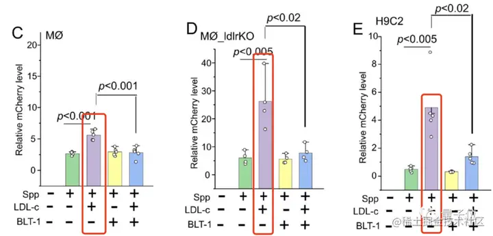 在添加BLT-1之后,它会抑制SR-B1发挥作用,导致LDL-c与SR-B1之间很难结合,相应地,Spp进入细胞的能力也随之减弱。