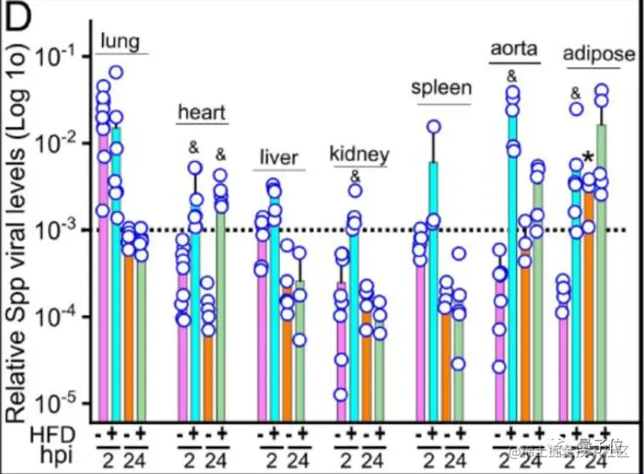 换句话说,就是在高脂饮食组小鼠中,Spp病毒更容易进入心脏、脂肪组织和肾脏细胞中去。