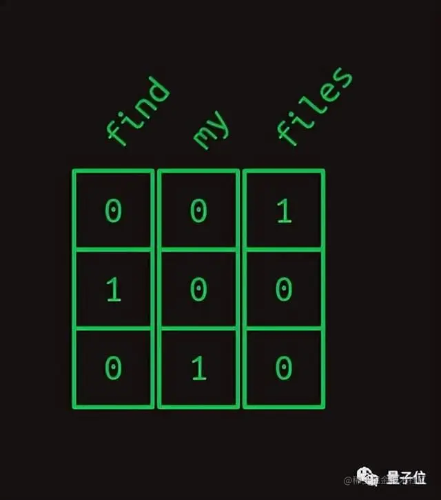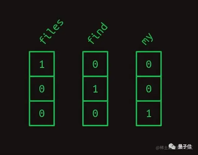 这样一来,句子“Find my files”就变成了一维数组的序列,压缩到一块也就像是二维数组了。