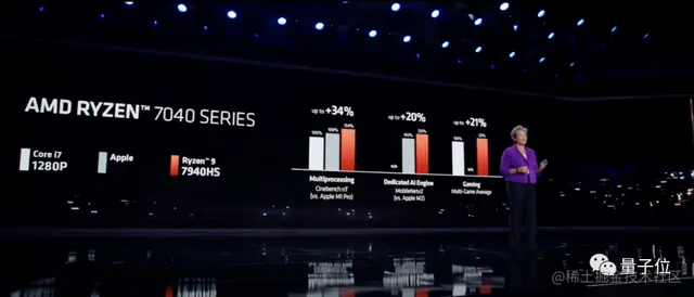 同样是在今年的CES上,AMD还直接对标苹果M系列芯片,推出了“世界最快的超薄处理器”——锐龙7040系列。