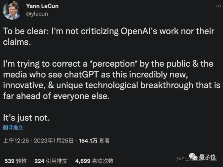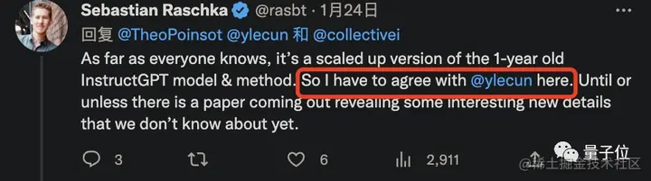 但也有学者为他撑腰,称“ChatGPT就是一年前的InstructGPT的改进版本,我必须同意LeCun的这个说法”。