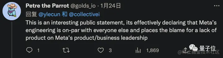 “LeCun这个观点多有意思啊,就是想说Meta的技术与其他实验室不相上下,没有产品只是因为Meta领导层不愿意做。”