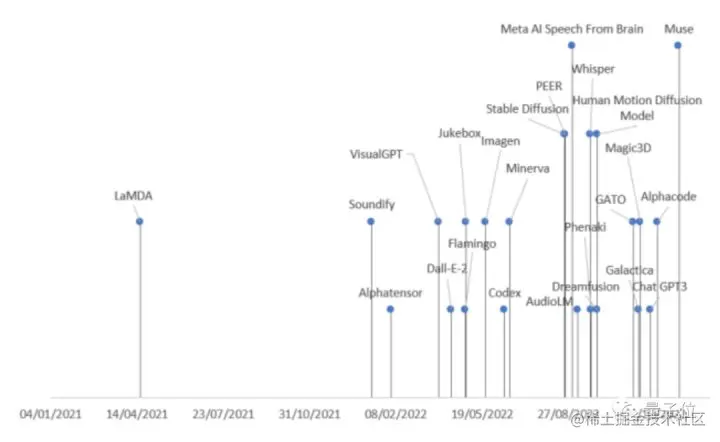 除了谷歌LaMDA和Muse以外,所有模型均为2022年发布。