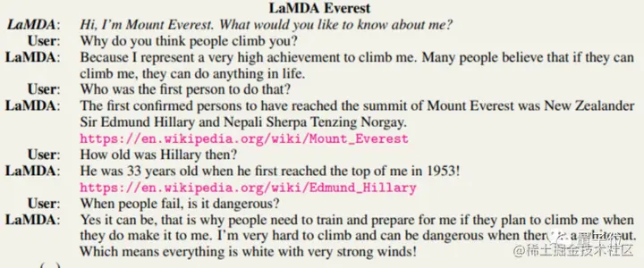 LaMDA基于Transformer打造,利用了其在文本中呈现的长程依赖关系能力。其具有1370亿参数,在1.56T的公共对话数据集和网页文本上进行训练,只有0.001%的训练数据被用于微调,这也是它效果好的原因之一。