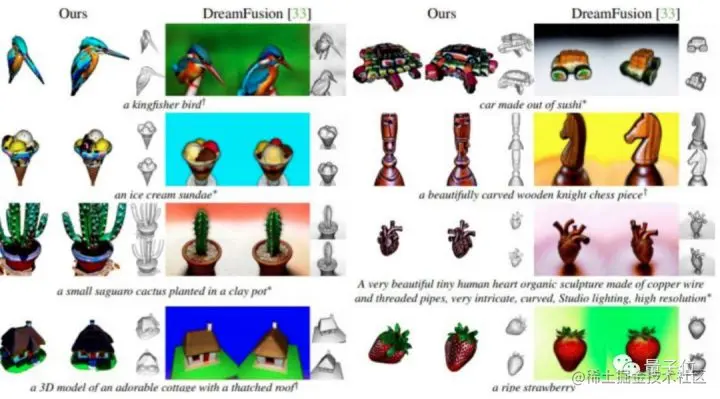 DreamFusion由谷歌和UC伯克利开发,基于预训练文本-2D图像扩散模型实现文本生成3D模型。采用类似NeRF的三维场景参数化定义映射,无需任何3D数据或修改扩散模型,就能实现文本生成3D图像的效果。