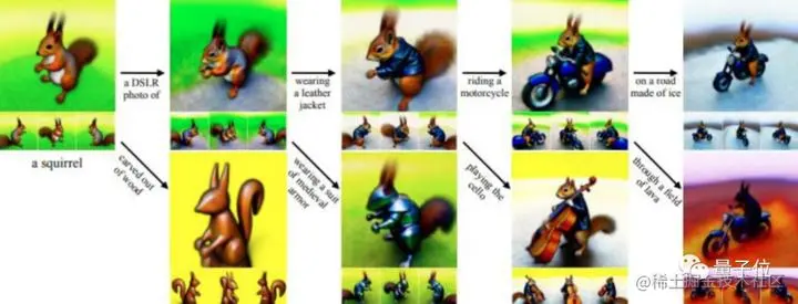 下图是DreamFusion生成“穿夹克的松鼠”3D效果:
