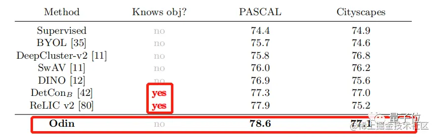 而Odin方法即使未获得先验知识,其效果也要优于获得先验知识的DetCon和ReLICv2。