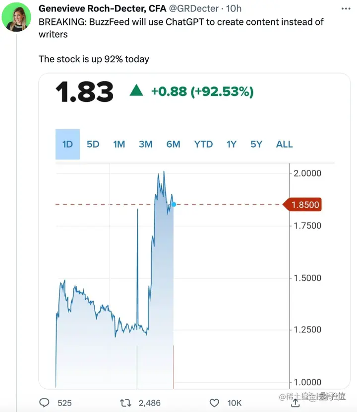 因此,BuzzFeed想出用ChatGPT帮自己生成内容,也被网友们猜测是应对公司股价危机采取的措施。