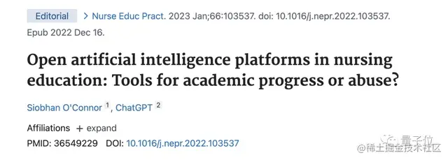 另一篇论文发表在《护士教育实践》杂志上,关于开放人工智能平台在护理教育中的利弊,同样,ChatGPT被列入作者栏: