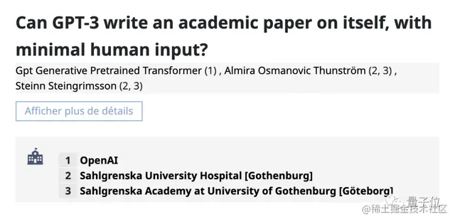 第四篇稍显“古早”,发表于2022年6月,探讨主题就是——AI生成论文的能力如何。被列入作者一栏的AI也并非ChatGPT,而是更早发布的GPT-3。