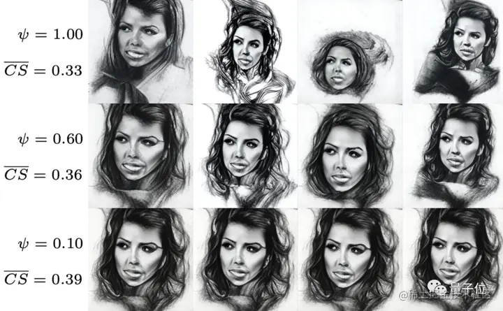 只需要控制参数ψ,就能在确保CLIP分数(用于评估图像生成效果)变动不大的情况下,改善生成图像的风格多样性。