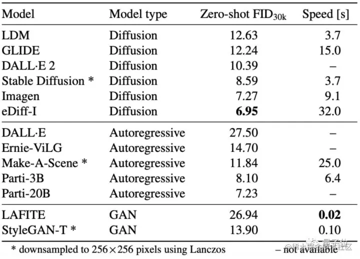 但在更高的256×256分辨率生成上,StyleGAN-T还是没有比过扩散模型,只是在生成效果上比同样用GAN的LAFITE要好上不少: