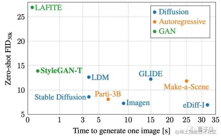 如果进一步将生成时间和FID分别作为纵轴和横轴,放到同一张图上来对比,还能更直观地对比生成质量和速度。