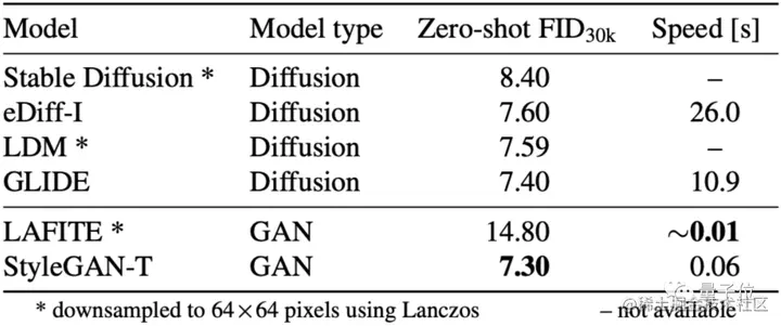 在低质量图像(64×64)生成方面,StyleGAN-T要比扩散模型做得更好。