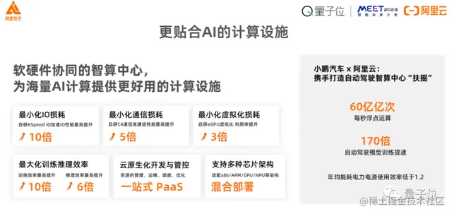 举个例子,在自动驾驶这方面,我们和小鹏汽车建设了一系列自动驾驶所需要的海量AI计算能力技术。