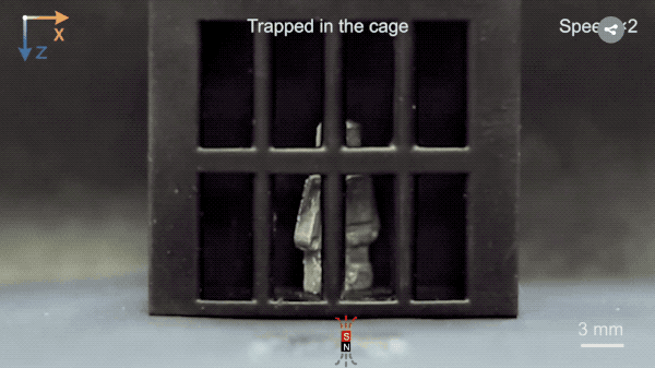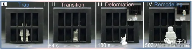 同理,这个机器人也能够自由切换液态和固态,只不过背后是由磁场驱动。