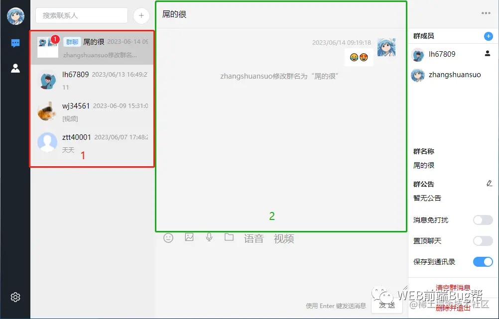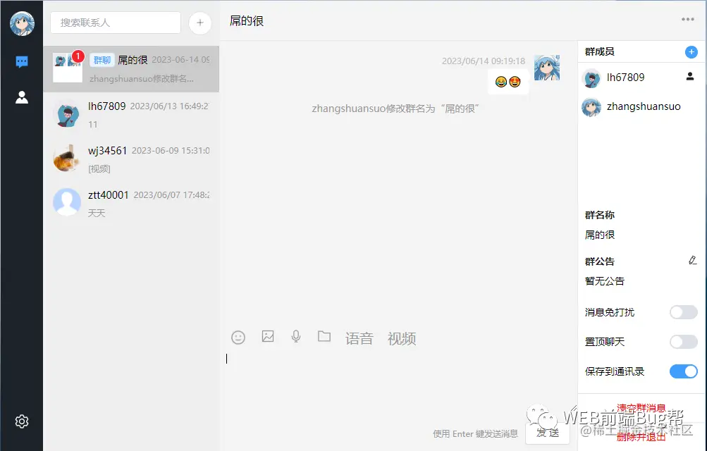 聊天记录删除、好友删除、添加新好友等操作,关联到聊天记录的都需要更新本地储存的聊天记录,具体的使用 pinia 或 vuex 可自行选择。