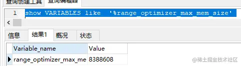 在range_optimizer_max_mem_size=8M,range_optimizer_max_mem_size=8情况下分别执行一下看效果。