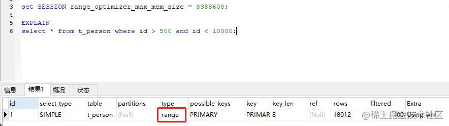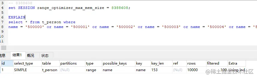 当然,总体来说,in后面条件越少越好,假设一张表有1000万条数据,in后面的条件有10000个,这时候就算走了range索引,估计效率也好不到哪里。