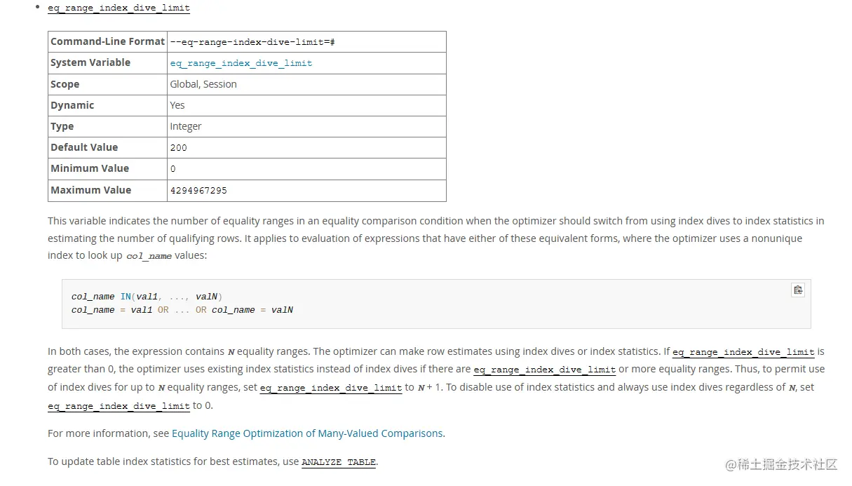 这个方法说的是当使用in或or查询时,比如where in(1,2,3),执行引擎会先预估表中的数量,表中的数量将决定使用的查询方式,比如,如果表中只有3条数据,那么很明显,这时候直接全表扫描。