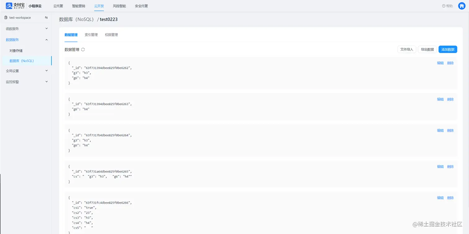 云开发支持 MongoDB 数据库,免鉴权调用,无需运维管理。 小程序端、云函数 可以直接调用,用户可以便捷进行数据存储,提供数据库管理控制台用户可以可视化进行数据库管理维护。