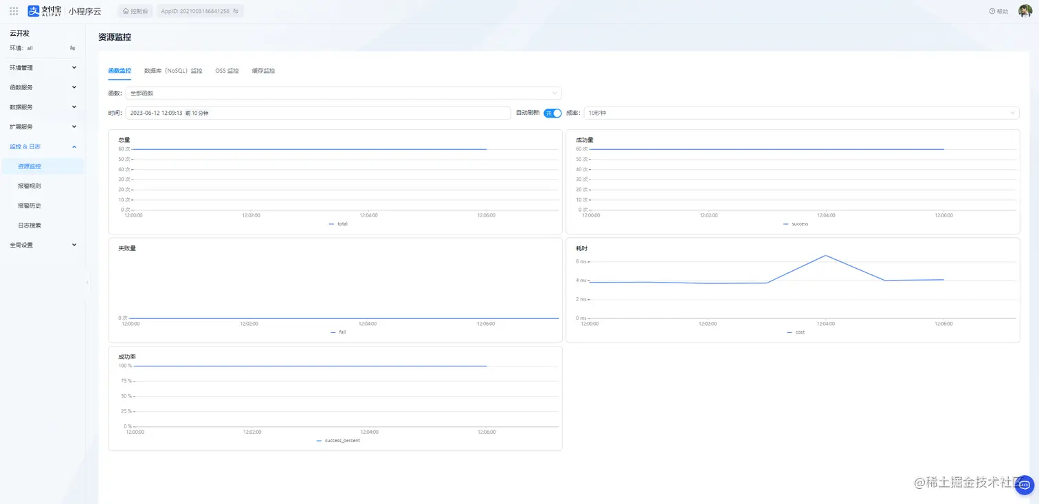 支持云函数、NoSQL、OSS、缓存等核心指标监控告警,可以通过短信、钉钉发送告警通知。
