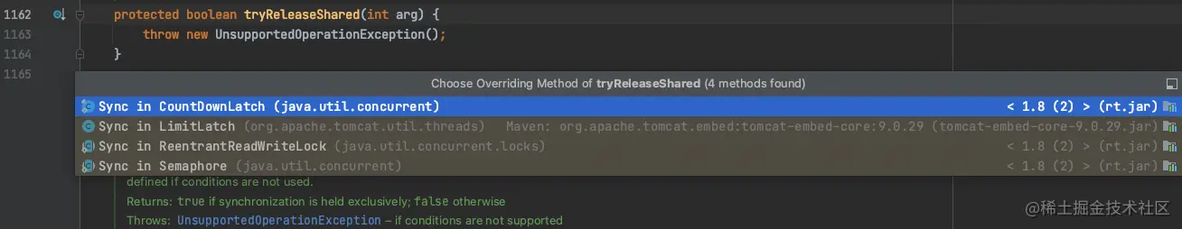 这段代码已经与Semaphore的release方法执行的是同一段方法入口,只是对应着这几种工具类的不同实现。