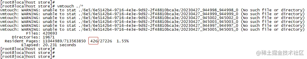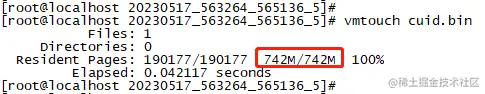 20230517_563264_565136_5 目录就占用了2GB cache,惊不惊喜意不意外?而且上面的所有文件,都完全加载到了cache中,比如在磁盘中占用743MB的文件cuid.bin,同样在cache中占用了742MB。