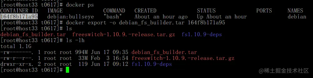 docker export -o debian_fs_builder.tar 164f8b171a95