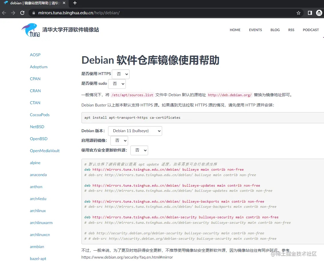 这里使用清华的源来加速安装:debian | 镜像站使用帮助 | 清华大学开源软件镜像站 | Tsinghua Open Source Mirror