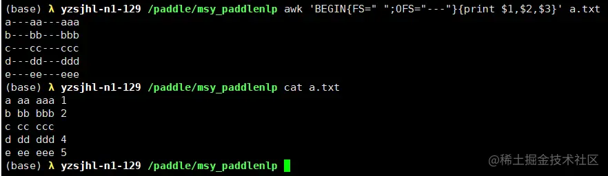OFS:输出字段分割符,默认为空格,- 比如输入文件数据是以空格分割,而输出需要以"-"分割,可以使用OFS进行格式化输出