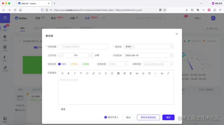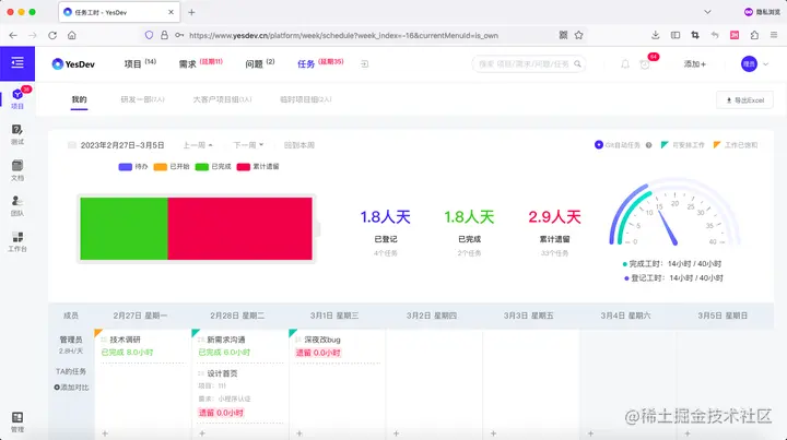 YesDev是以「任务为最小价值交付单元」的新一代研发协同管理平台。基于前面每个人、每个部门在每天、每周、每月的任务登记、协作和管理,还可以进行任务看板的精益协作,和实时的项目进度、需求进度管控。