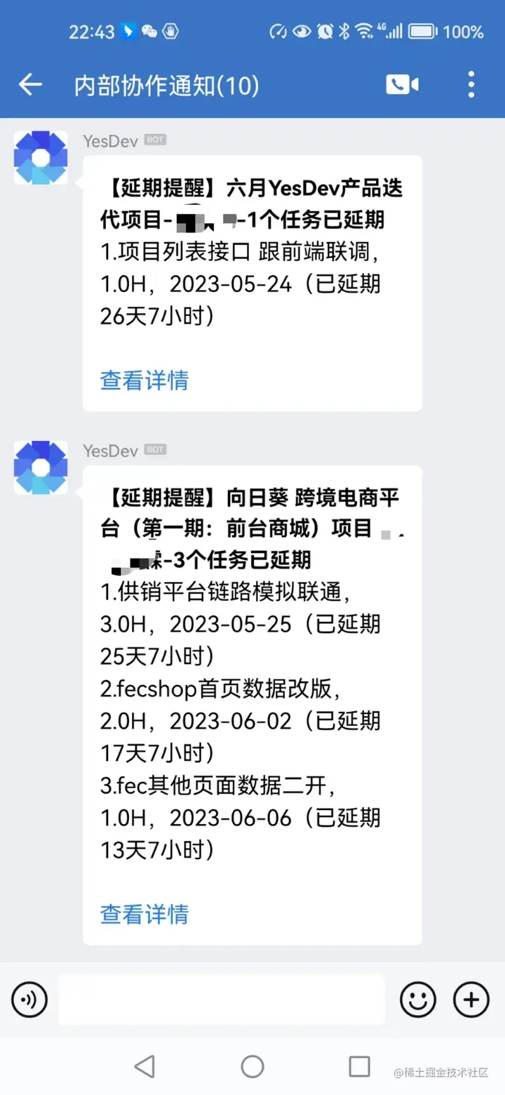 最后,如果谁的任务有延期了,还会有 企业微信/钉钉 群通知提醒。