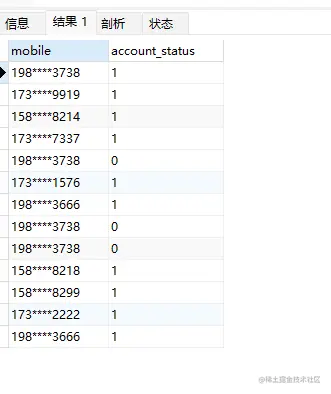 如上sql,我们将手机号的前三位与后四位截取了出来,中间的四位用**** 做了替换,结果如下: