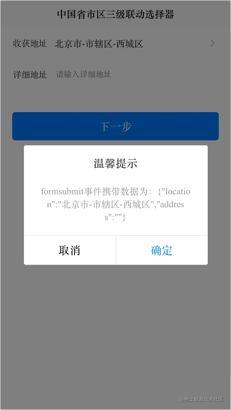 content: 'formsubmit事件携带数据为:' + JSON.stringify(e.detail.value)