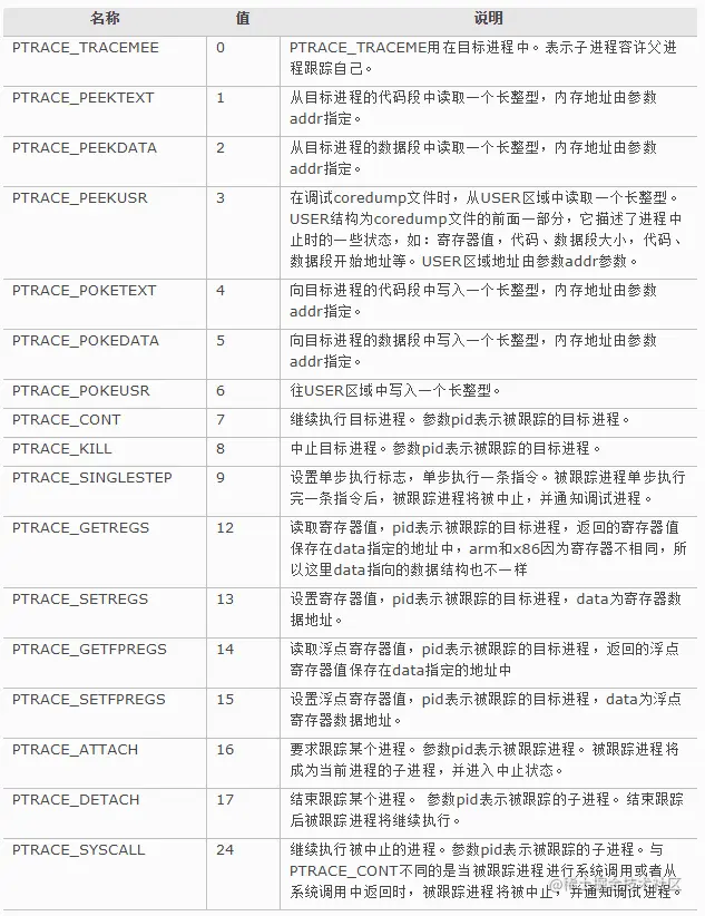 不过在执行你的程序之前,我会在子进程中调用ptrace函数,然后指定第一个参数为PTRACE_TRACEME,这样一来,我就能监控子进程中发生的事情了,也才能对你指定的程序进行调试。