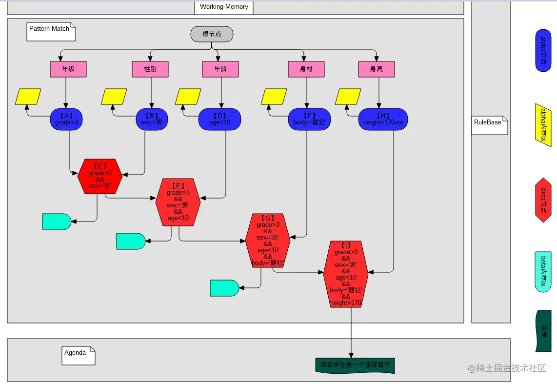 任何一个规则引擎都需要很好地解决规则的推理机制和规则条件匹配的效率问题。